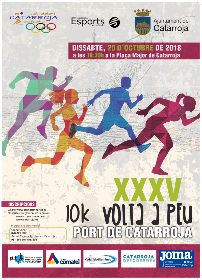 El Ayuntamiento de Catarroja y el Club Catarroja Unió Esportiva organizan la XXXV edición de la Volta a Peu Port de Catarroja 2018, carrera de 10Km con salida y llegada en la Plaza Mayor, y discurriendo en parte por el Puerto de Catarroja.