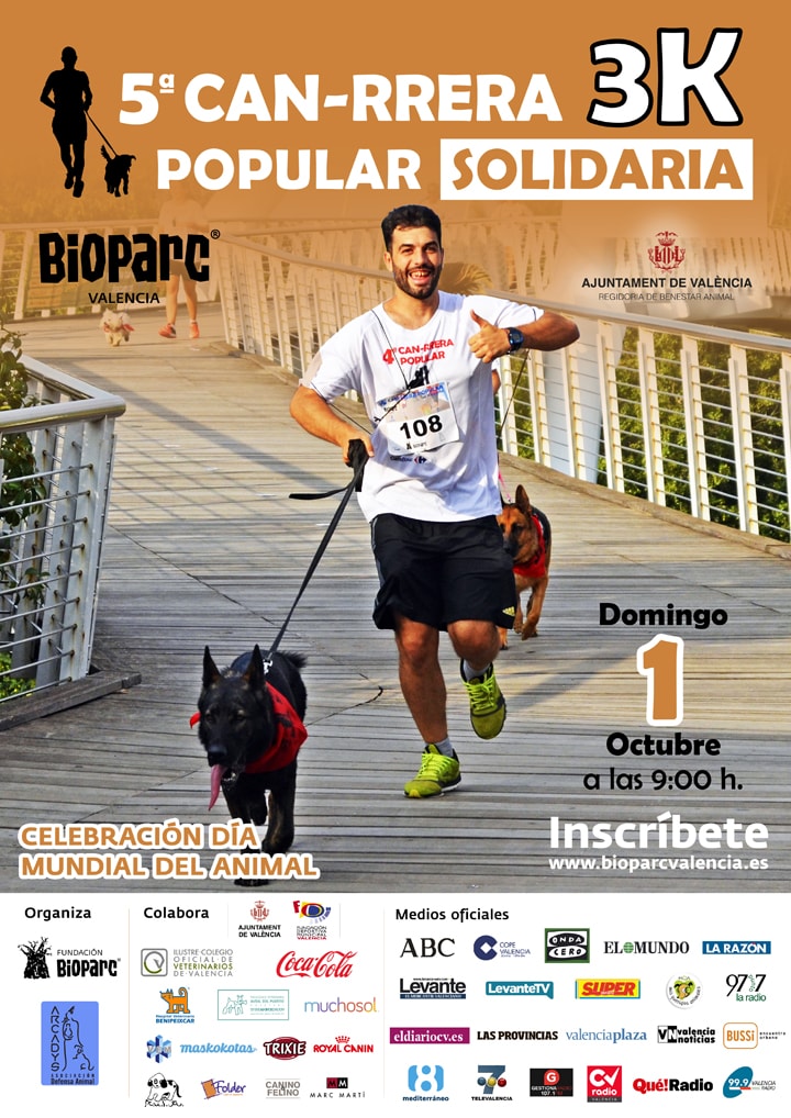 5ª Can-rrera Popular de Valencia, una prueba solidaria con motivo del Día Mundial del Animal que tiene por objetivo sensibilizar a la población sobre la necesidad de conservar el medio ambiente y proteger a los animales.
