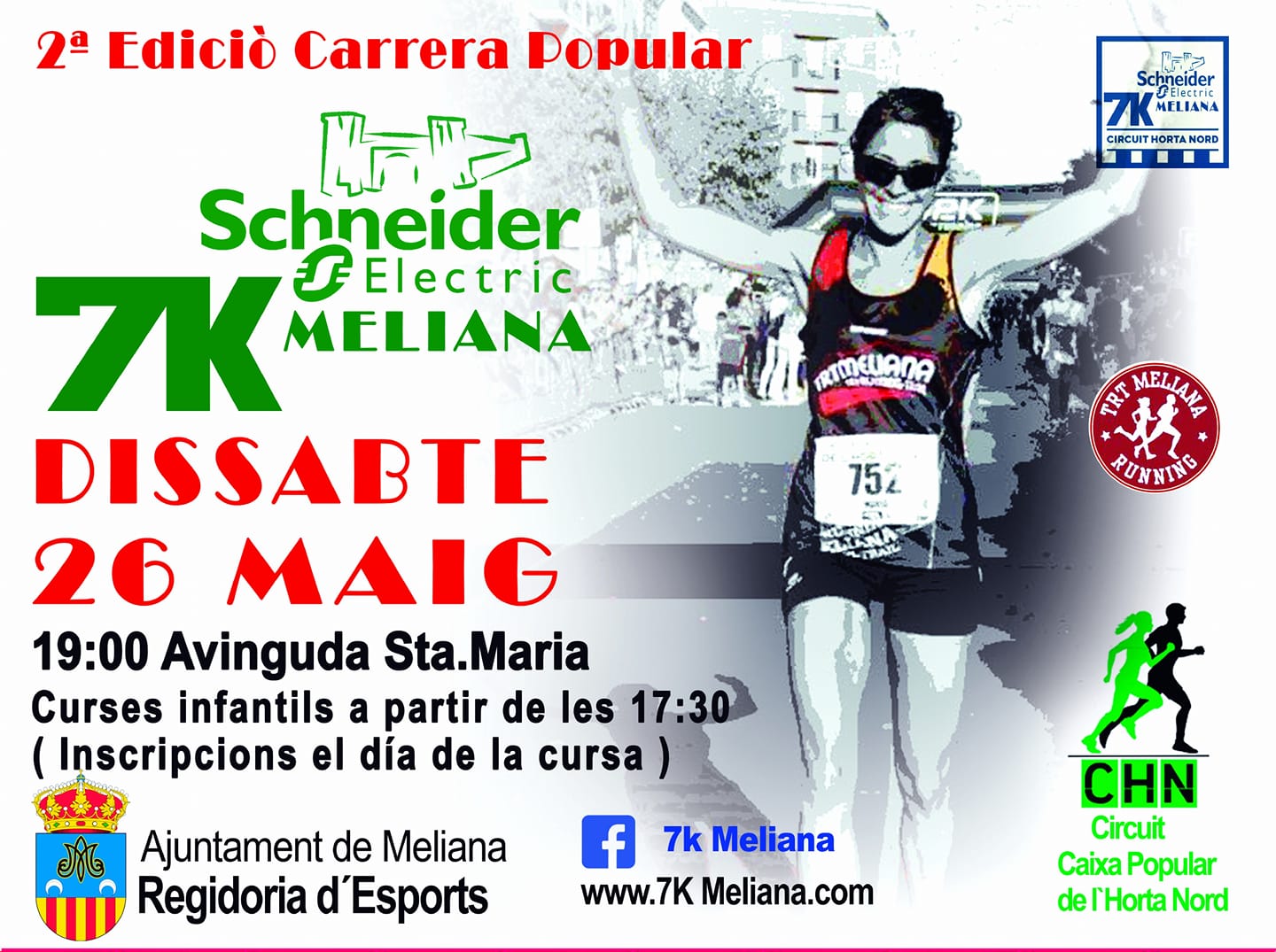 TRT Meliana organiza la II 7K Meliana 2018 Schneider Electric que tendrá lugar el sábado 26 de Mayo.