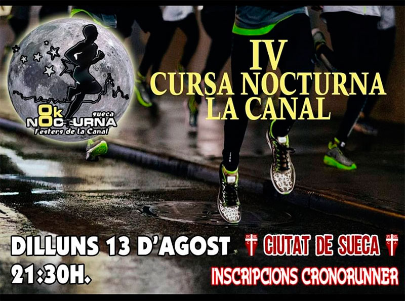 La asociación de Festeros de La Canal de Sueca organizan la IV carrera Nocturna La Canal Sueca 2018 que se celebra el Lunes 13 de Agosto.