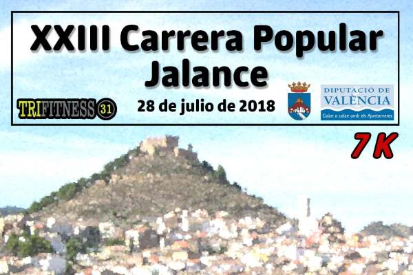 El sábado 28 de Julio se celebra la XXIII Carrera Popular de Jalance 2018. La prueba consta de un recorrido de 7000 metros con salida y llegada en la calle Mayor de Jalance en Valencia.