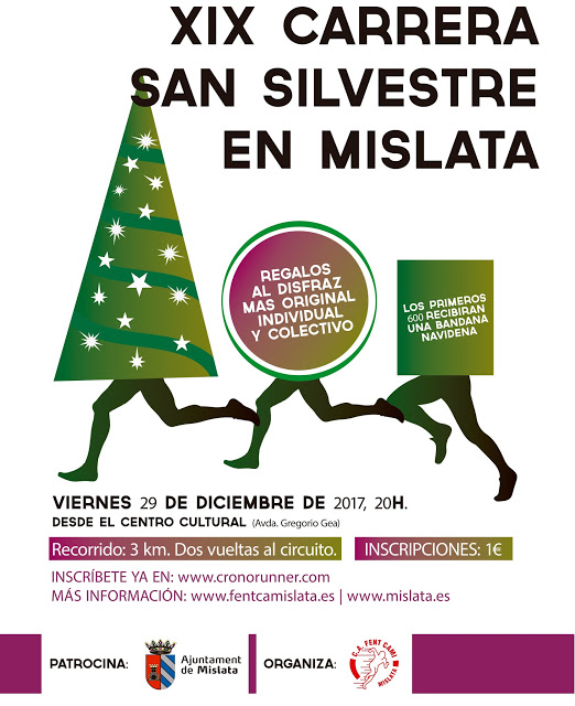 El Club de Atletismo Fent Camí de Mislata organiza la 19ª Carrera SAN SILVESTRE MISLATA 2017 que tendrá lugar el viernes 29 de Diciembre a partir de las 20:00 horas con salida y llegada en la Avenida de Gregorio Gea nº 34 (Centro Cultural de Mislata)