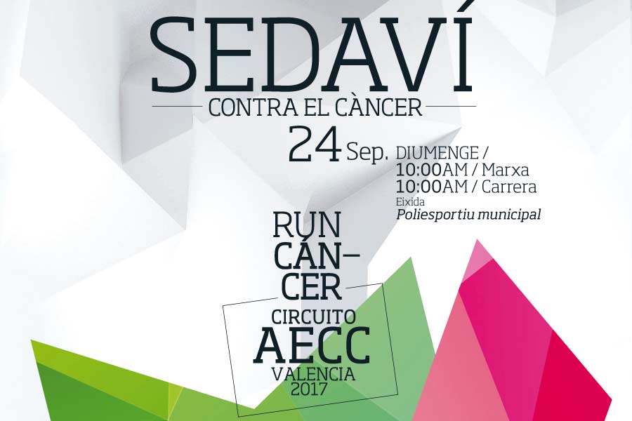 El Domingo 24 de septiembre de 2017, a las 10:00h se celebra en la localidad valenciana de Sedaví la Carrera Solidaria Sedaví Contra el Cáncer. Será una carrera de 8Km. y una marcha no competitiva de 4k.