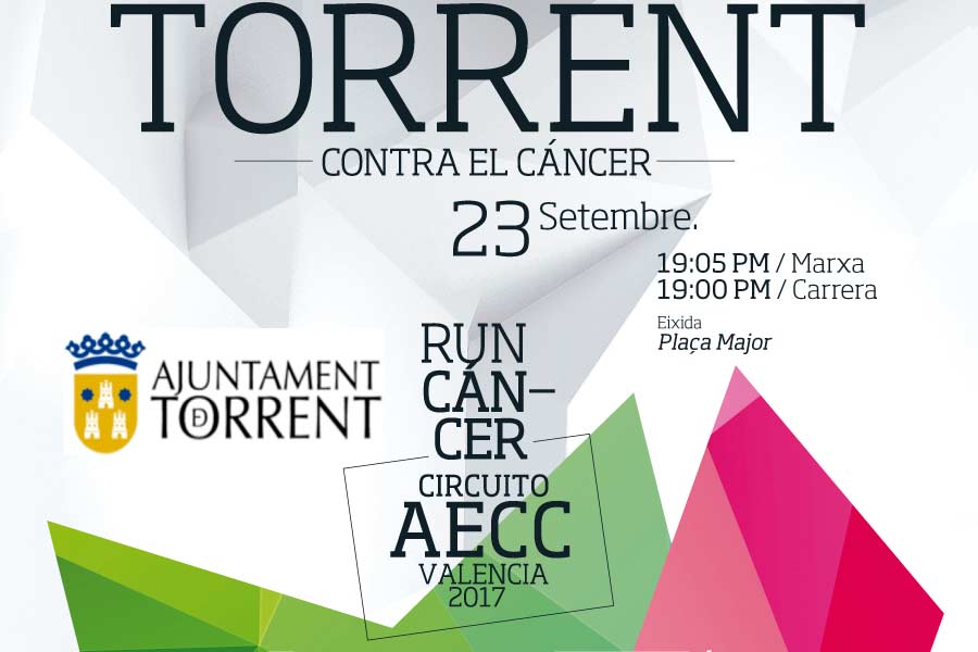 El sábado 23 de septiembre de 2017, a las 19:00h se celebra en la localidad valenciana de Torrente la Carrera Solidaria Torrent Contra el Cáncer. Será una carrera de 5200m. y una marcha de 4k.