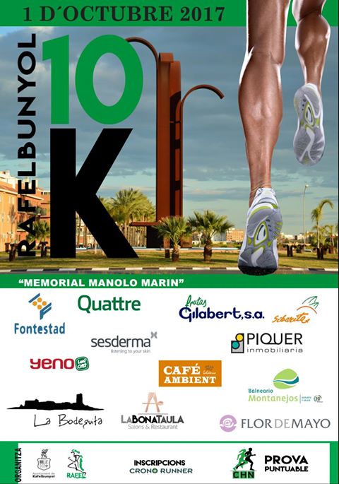 El Club de Atletismo RAFEL junto a la concejalía de deportes del Ayuntamiento de Rafelbunyol organizan la primera edición de la carrera 10K Rafelbunyol “Memorial Manuel Marín” el próximo Domingo 1 de Octubre de 2017 a partir de las 9:30 horas.