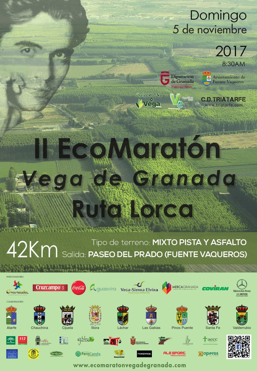 El Domingo 5 de Noviembre de 2017 se celebra la II edición del Ecomaratón Vega de Granada «Ruta Lorca». Un recorrido de 42km por el entorno de la Vega de Granada y por la población que vio nacer y crecer a Federico García Lorca.
