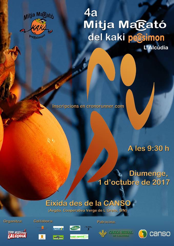 de l’Alcúdia con la colaboración del Ayuntamiento de l’Alcúdia y el Club Atletisme l’Alcúdia organizan la IV Mitja Marató del Kaki.