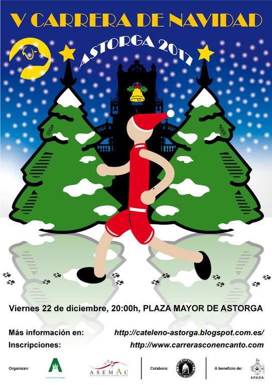 El Ayuntamiento de Astorga y el Club Atletismo Teleno organizan el viernes 22 de diciembre a las 20:00 horas la V Carrera de Navidad Astorga 2017.