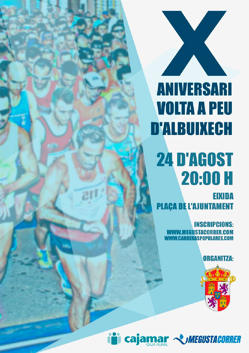 El Viernes 24 de Agosto se celebra la X Volta a Peu Albuixech 2018, carrera de 7800 metros que organiza el ayuntamiento de la población valenciana. La carrera dará comienzo a las 20:00 horas desde la Plaza del Ayuntamiento de Albuixech.