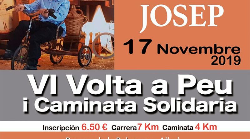 VI Volta a Peu solidaria Tots Amb Josep 2019 que se celebrará el Domingo 17 de Noviembre a partir de las 9 horas. Salida y llegada desde el el parque de la Balaguera de Albal.