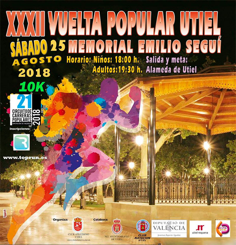El XXI Circuito de Carreras Populares Diputación de Valencia aterriza en la población de Utiel para celebrar el sábado 25 de Agosto una de sus pruebas puntuables, la XXXII Vuelta Popular a Utiel 2018, Memorial Emilio Seguí.