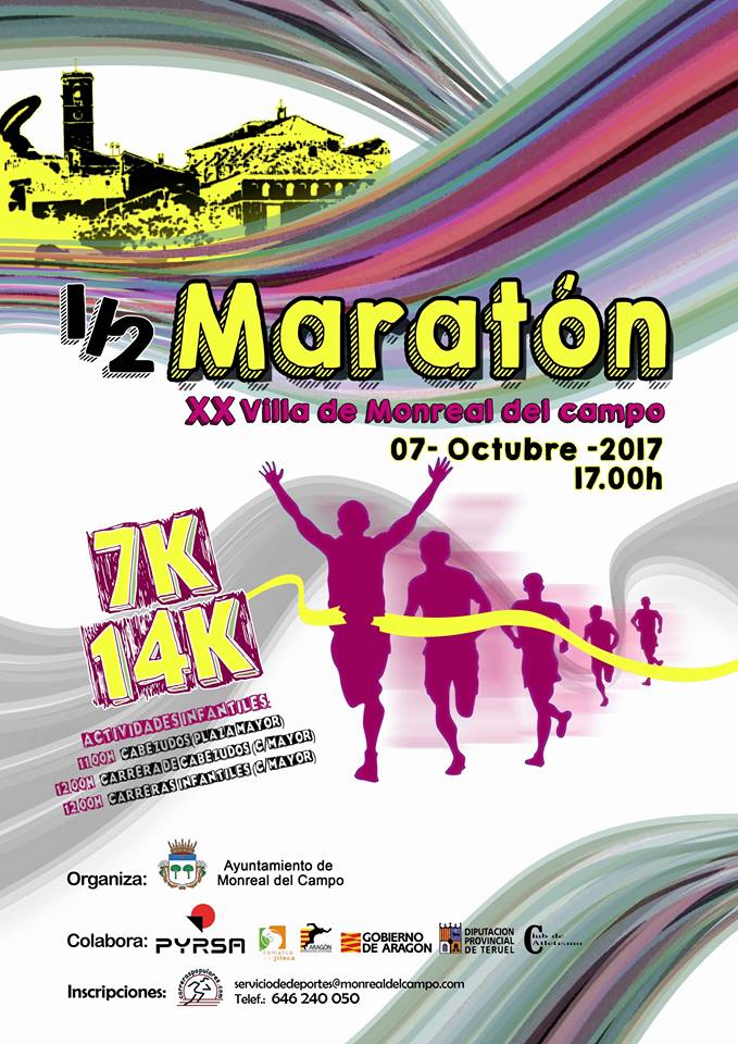 El 7 de Octubre a las 17:00 horas se celebra la XX Media Maratón Villa de Monreal del Campo en Teruel. Además de la media maratón, se correrá una carrera de 14Km y otra de 7Km.