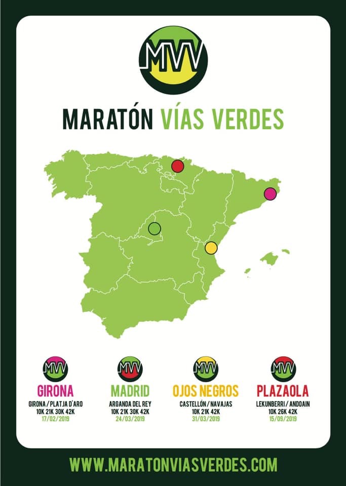 El Domingo 24 de Marzo se celebra una nueva edición de la Maratón Vías Verdes 2019 de Arganda del Rey en la provincia de Madrid. El evento que transcurre por antiguas vías de ferrocarril reconvertidas contará con cuatro distancias diferenciadas, Maratón, 30K, 21K y 10K.