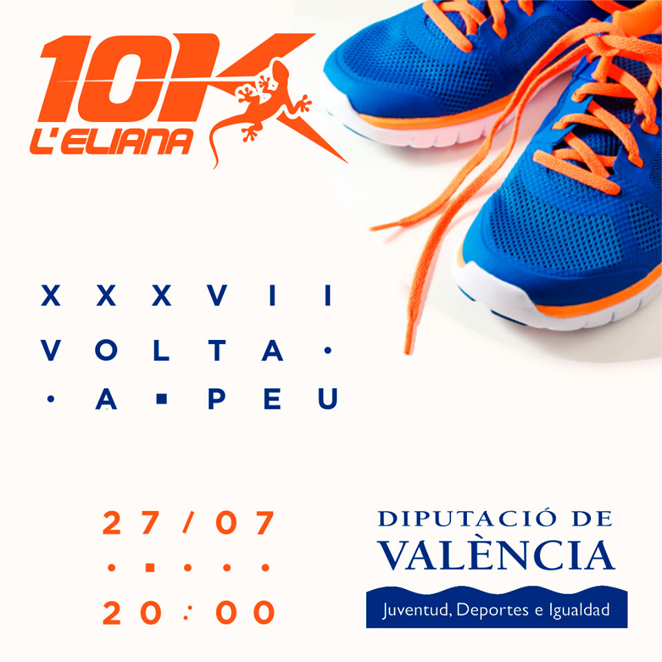 El C.A. L’Eliana Running organiza el sábado 27 de Julio la 10K l’Eliana XXXVII VOLTA A PEU 2019. Un recorrido con una distancia de 10000 metros con salida y meta desde la pista de atletismo del Polideportivo Municipal de L’Eliana sito en calle Los Almendros s/n. La salida se dará a las 20:00 horas.
